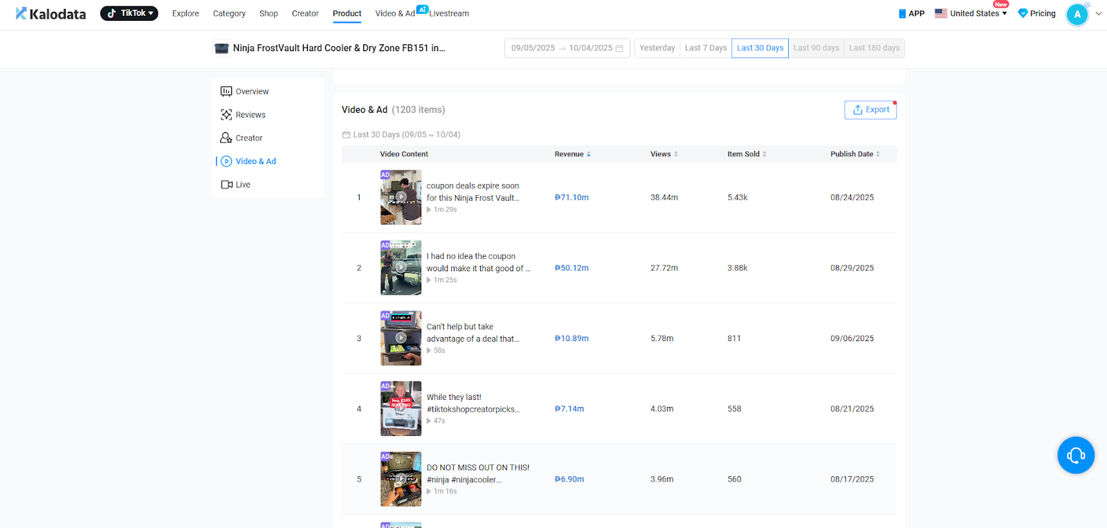 Ending it off by also showing the video advertisements of the product and livestreams showing the revenue of up to the past 180 days.