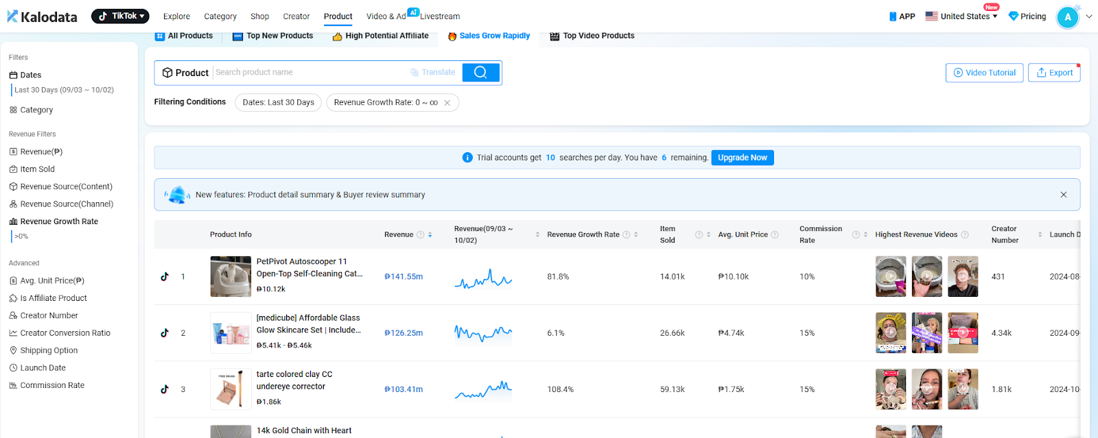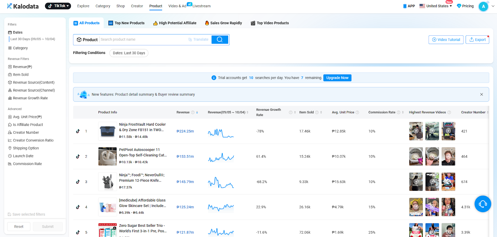 When it comes to a tool’s ability to research products, Kalodata starts off strong by letting its users know how much revenue products are getting.