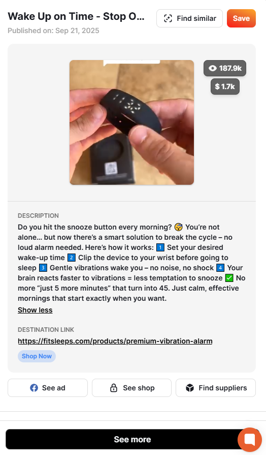 Minea also specializes in filtering the products being advertised, along with how and where they are being advertised.