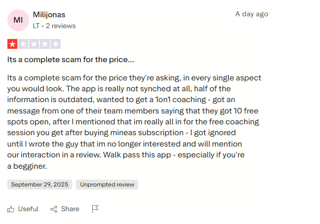 Out of the two, Minea is the tool with the most reviews. Minea has an average score of 3.6 stars, and here are some of the most recent ones.